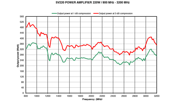- Puissance de sortie minimale garantie avec un taux d'harmoniques < -15dBc minimum ou < -20dBc typique